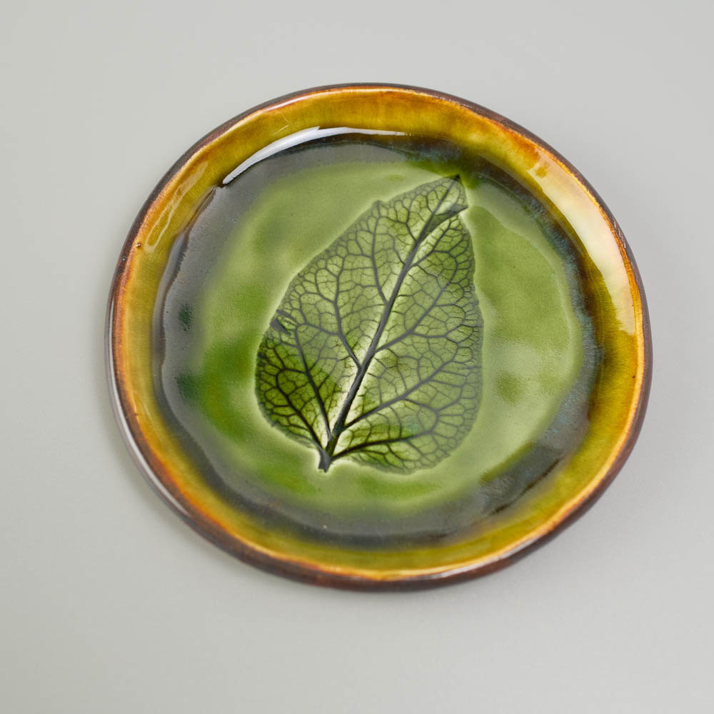 Керамічне блюдце з відбитком справжніх рослин.